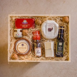 Cassetta di Natale by Casa del Formaggio Hai una persona cara che vuoi ringraziare a Natale? Regalagli un pacco natalizio che si ricorderà! La cassetta di Natale Pensiero Gustoso, di legno riutilizzabile, contiene : Strolghino Della tana Colimena Rusticata di tonno Acciughe Rizzoli in salsa piccante 50g Riso Acquerello 250g Torrone Morbido ricoperto...