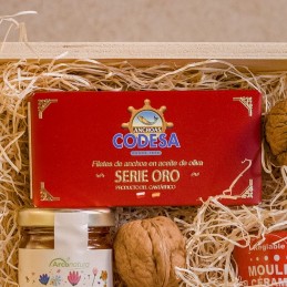 Pacco di Natale by Casa del Formaggio Hai una persona cara che vuoi ringraziare? Regalagli un pacco natalizio che si ricorderà! La cassetta di Natale Gourmet contiene : Filetto Salmone Upstream Acciughe del cantabrico Codesa serie oro 85g Crottin - formaggino francese di latte di capra Burro francese Du pays Rochois 250g Bloc de Foie Gras al...