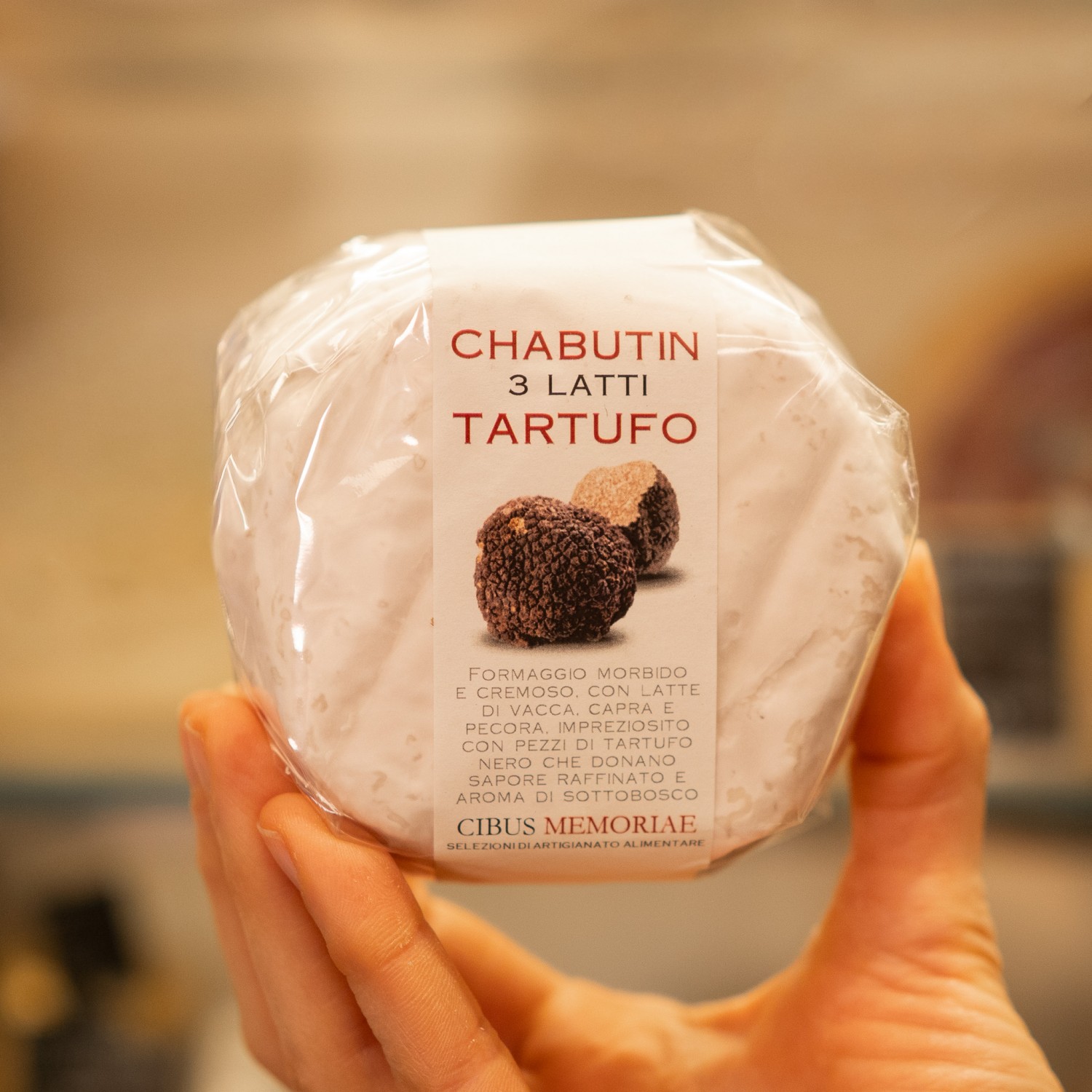 Ingredienti : Latte, latte di capra, latte di pecora, caglio, sale, tartufo (tuber aestivum )1%, aroma