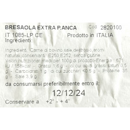 Bresaola punta d'anca Bresaola punta d'anca affettata: dalla coscia di bovino si estrae il cuore della fesa, taglio nobile e di ottima qualità. Con una lavorazione accurata e una stagionatura asciutta e ventilata secondo il disciplinare di produzione del Consorzio di Tutela si ottiene un prodotto magro, tenero e gustoso. I salumi affettati vengono spediti...
