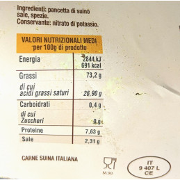 pancetta di suino, sale, spezie, nitrato di potassio