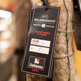 Il Salamesimato è un salame prodotto esclusivamente con la carne di Un unico maiale, in questo caso un suino nero di Parma, utilizzando tutti i tagli, anche i più pregiati come culatello, spalla e fiocco. Ne nasce un salame eccezionale, di altissimo livello, mai visto prima, dal sapore deciso ma equilibrato.